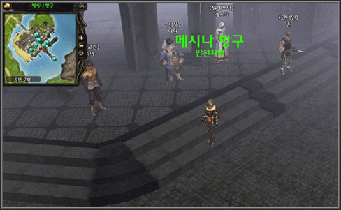 좌측의 그림처럼 마을과 같은 안전 지역에서는 장소의 이름이 초록색으로 표시가 되며 캐릭터간의 공격은 불가능 합니다. 단, 아무리 안전한 마을 지역에서도 몬스터의 공격은 피할 수 없으니 조심하시기 바랍니다.