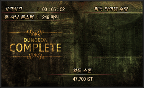 던전의 모든 몬스터를 사냥한 경우 던전이 완료 됩니다.