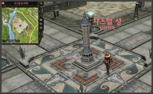 좌측의 그림처럼 공성 지역은 일반 지역에 속하기 때문에 장소의 이름은 붉은색으로 표시가 되며 캐릭터간의 전투, 즉 PK가 가능 합니다.