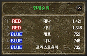 - 경기 진행 중 화면 좌측에 콜로세움 포인트 상위 5인의 정보가 표시됩니다.
