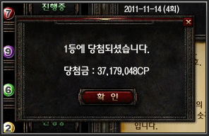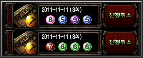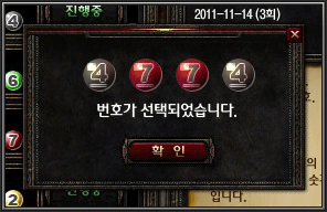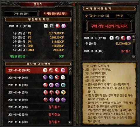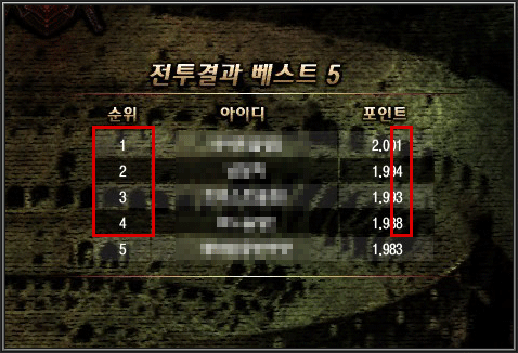 * 콜로세움(PVP) 전투결과의 1위부터 4위까지 포인트 마지막 번호를 순서대로 선택한 번호가