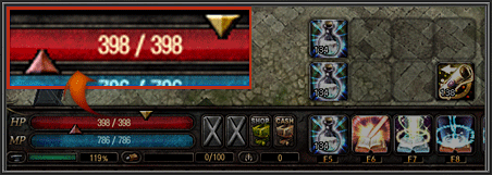 하단 붉은색 포인터로 수치를 조절 할 수 있으며, 해당 수치 이하로 HP가 내려갈 경우 퀵슬롯의 귀환 주문서가 사용됩니다.