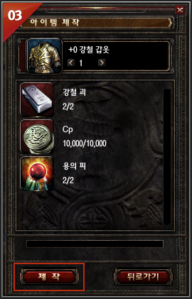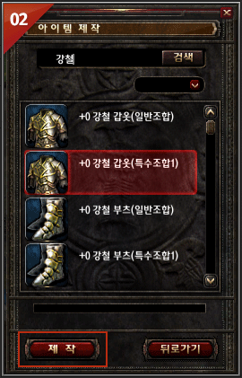 STEP 02. l 제작할 아이템을 이름으로 검색하거나 분류 목록에서 선택하고 제작 버튼을 클릭합니다.