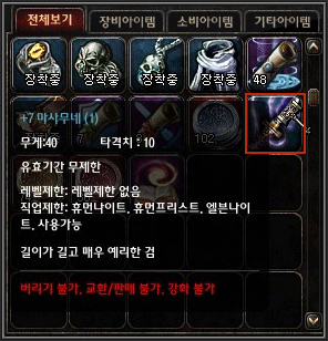 상태가 된 아이템은 인벤토리 내