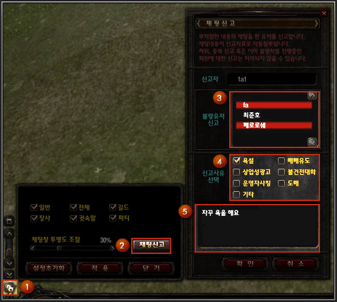 부적절한 채팅을 한 유저를 운영팀에 신고