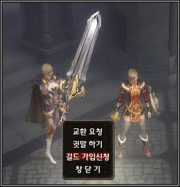 둘째는 가입하고자 하는 군주를 찾아가, 군주에게 [shift + 마우스 왼쪽버튼]클릭하여 캐릭터 메뉴를 호출한 후 [길드가입 신청]메뉴를 클릭합니다.