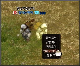 찾아가 [shift + 마우스 왼쪽버튼] 클릭하여 캐릭터 메뉴를 호출한 후 [연합 가입신청]메뉴를 선택하면 됩니다.